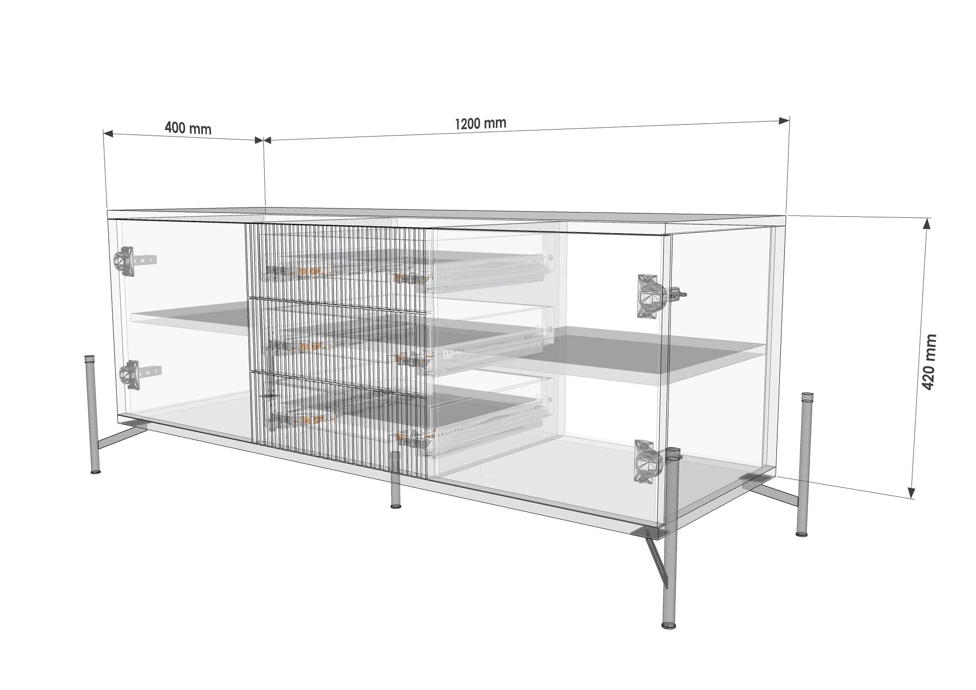 Эта тумба под ТВ оснащена закрытыми полками, которые обеспечивают удобное хранение различных вещей, таких как книги, декоративные предметы и другие аксессуары. Благодаря компактным размерам, она подходит для размещения в небольших помещениях и не занимает много места.