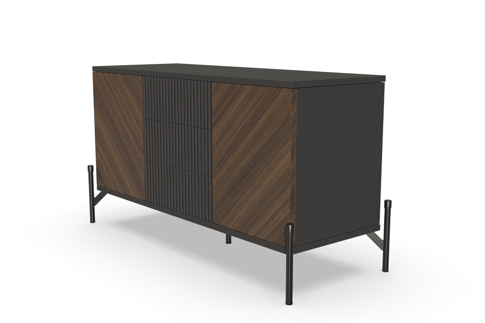 Тумба под ТВ "Шале" от фабрики Geona - это функциональное и элегантное решение для вашей гостиной. Она имеет эффектную отделку в диагональном направлении текстуры, что придает ей неповторимый и стильный вид.
